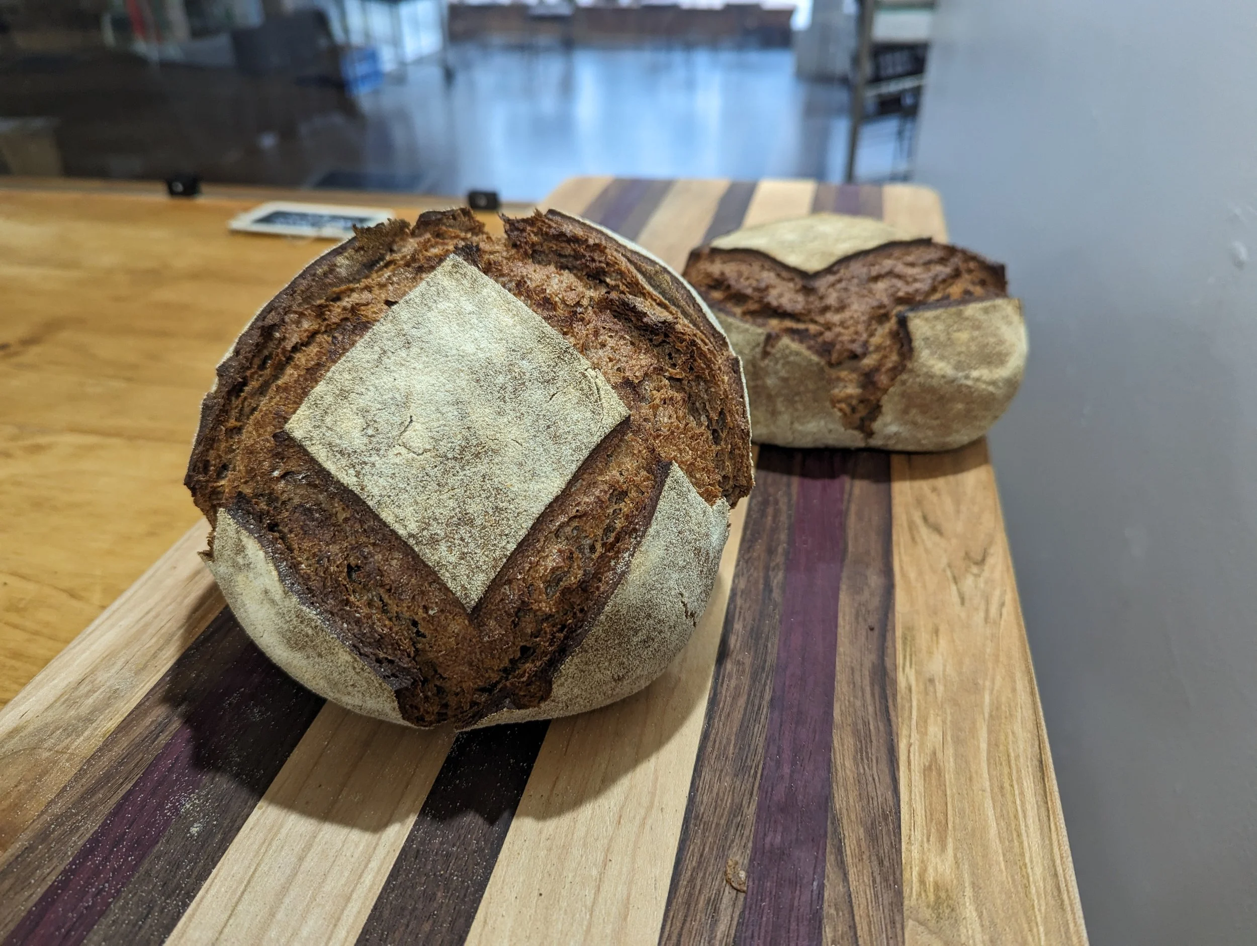 Image 1 of 1 Weekly Special: German Black Rye $12.00 A dark and rich sourdough made with buckwheat honey, Farmer Ground rye flour, coffee, and dutch-processed cocoa. Add To Cart Added! A dark and rich sourdough made with buckwheat honey, Farmer Ground rye flour, coffee, and dutch-processed cocoa.